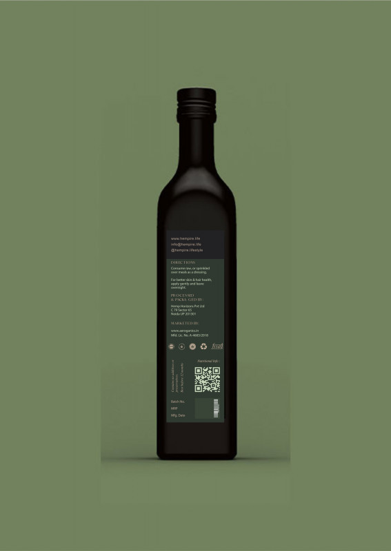 Hemp Seed Oil is a whole-food product made from cold pressing hemp seeds to extract the oil. It is a versatile essential oil that covers all aspects of your health care regime which comes from its ideal 3:1 Super Omega-6 (SDA) to Super Omega-3 (GLA) ratio. Our Hemp Seed Oil is 75-80% Polyunsaturated Fatty Acids (the good fats) and only 9-11% of the less desired saturated fatty acids. It can be used in a wide range of recipes, consumed on its own as a dietary supplement, applied topically as a moisturizing & nourishing oil. Hempire's cold-pressed hempseed oil is made from the finest hemp seeds taken from several small farms in mountainous regions of India.