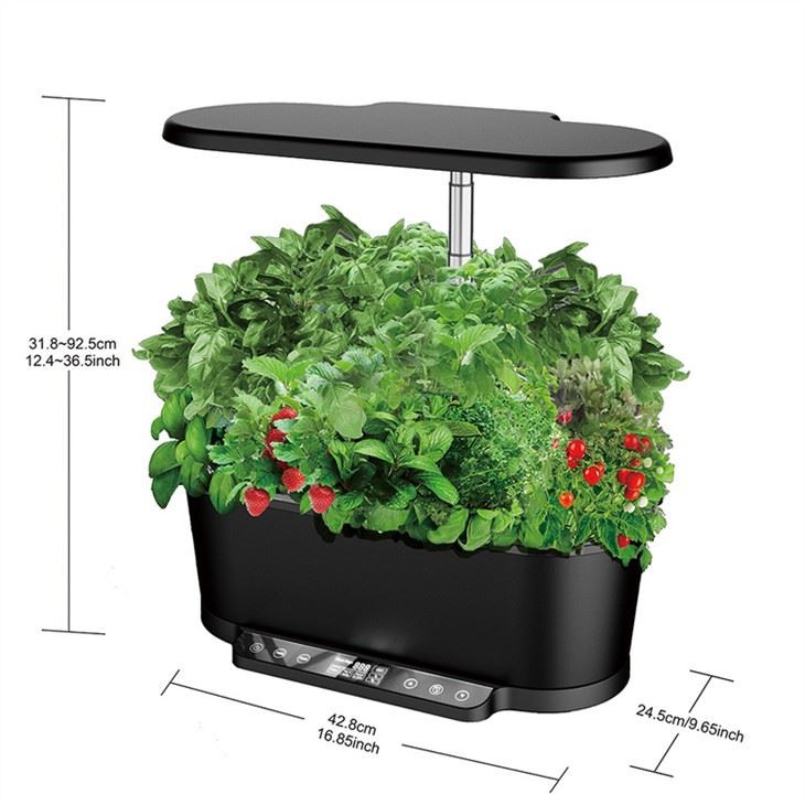 Our indoor apartment vegetable garden SG36 has 3 different planting model: Normal, Grow and Enjoy to suitable for differnt plants. You can touch control panel to adjust the light, which is up to 48-watt LED lighting system and automatically turns lights on and off. Fully adjustable lamp arm of the indoor apartment vegetable garden has a 70cm tall growing space for highyields and plant variety. The water pump to fresh water every 30 minutes and it can be easly take out for washing.